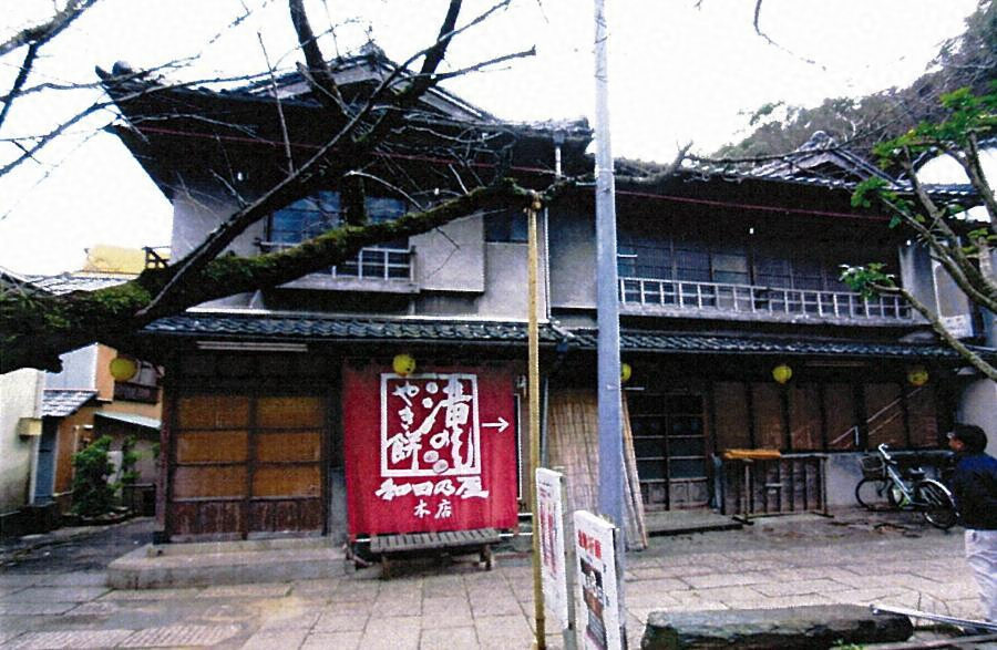大滝山山麓、登り口に北面する。東西一三メートル南北五・六メートル、西面に増築部を付設。東西棟を主棟とし、東端に南北棟の入母屋屋根を造るなど複雑な屋根とする。一階は土間で、餅の焼き場や販売所、二階に座敷を設ける。観光地に残る老舗店舗の一例。