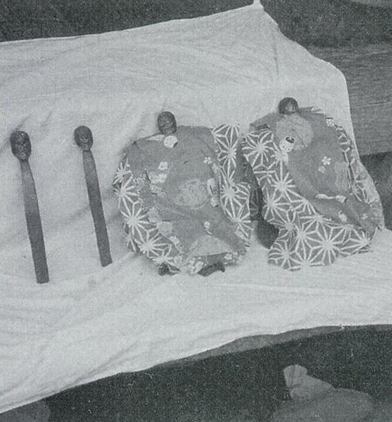 本件は、東北地方に顕著にみられる、「おしらさま」を祀る習俗である。「おしらさま」は、家の神、蚕の神、馬の神などといわれ、「おひなさま」「おこないさま」などとも呼ばれる。小正月前後の時期に女性たちによって祀られ、その顔に白粉を塗ったり、「おせんだく」と称して新しい布を着せたりするほか、イタコなどの民間巫女を呼んで手に持って遊ばせる地域もある。