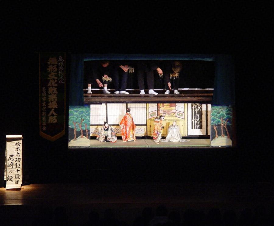 演目には朝顔日記・太功記十段目・壺坂霊験記など八曲ほどがあり、人形の首は一般よりやや大ぶりである。