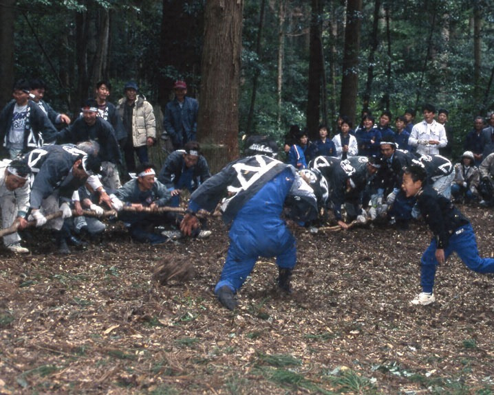この行事は、毎年4月の初丑の日に行われる、山開きの祈願行事である。若者たちが、木遣り歌を歌いながら、南谷および中谷の大山神社、荒神様の御神木に山蔓を7巻き半巻き、最後に御幣だきと呼ぶ役の者が山蔓に大御幣を挿す。(※解説は選択当時のものをもとにしています)
