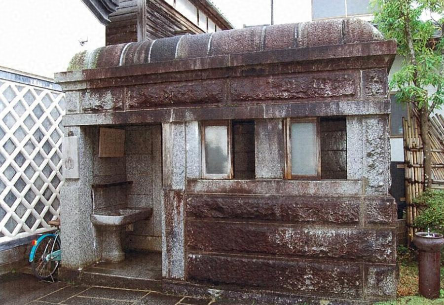 嫁の蔵の西側に位置する。石造平屋建、東西四・〇メートル南北二・七メートル。地元産の花崗岩を用い、壁面を江戸切仕上げとし、北側に出入口、北・西面に窓を開く。東半に更衣室や洗面所、西半に浴室を設け、浴槽をつくる。白御影石を贅沢に用いた浴室遺構。