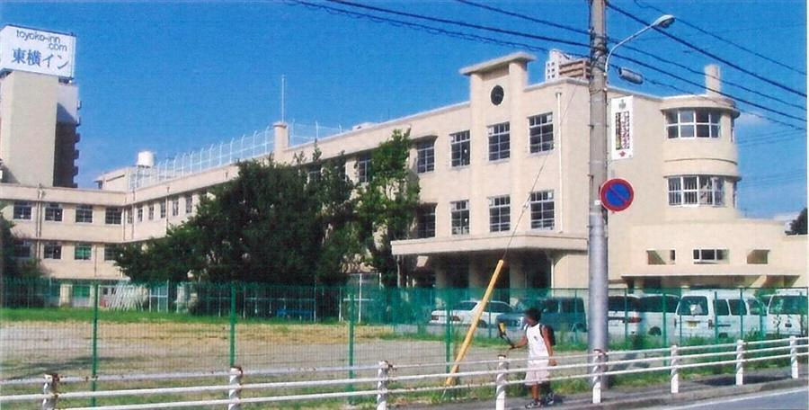 RC造3階建で,敷地の東側と北側にL字形平面で建つ。東棟南端から平屋を延ばし,入隅に設けた四半円平面の玄関ホールとその上の半円筒形階段室がアクセントとなる。外壁は矩形窓を整然と配し,窓庇で水平線を強調している。昭和初期のRC造学校建築の好例。