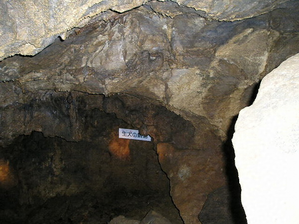 秩父古生層ノ石灰岩中ニ生ジタル一鐘乳洞ナリ形不規則ニシテ洞内延長約三〇〇メートルニ及ブ 洞内ヨリ曽テ狼族ノ遺骨ヲ出シタルコトアリ