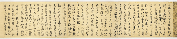 空海(弘法大師、774~835)が、義浄訳『能断金剛般若経』を密教の立場から解釈したもの。文中には加筆訂正の跡が著しく、空海の自筆草稿本であることを明らかにしている。文字の運筆は鋭くかつ軽妙で、空海の草書の面目をよく伝えている。