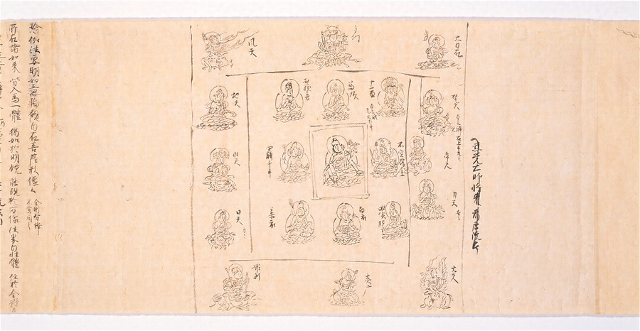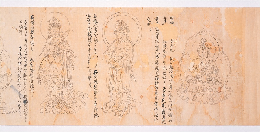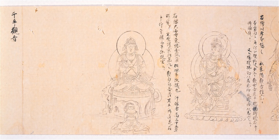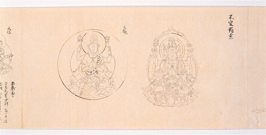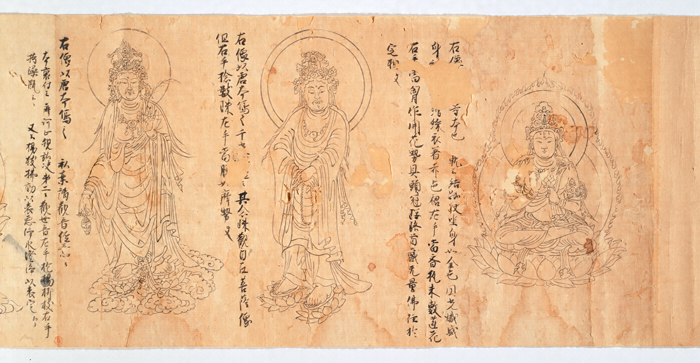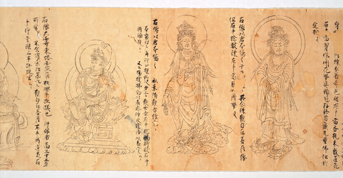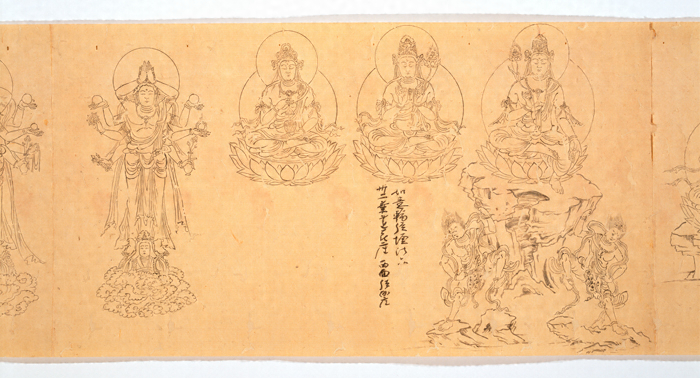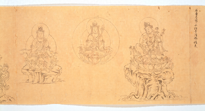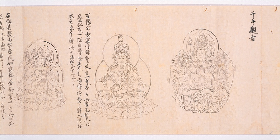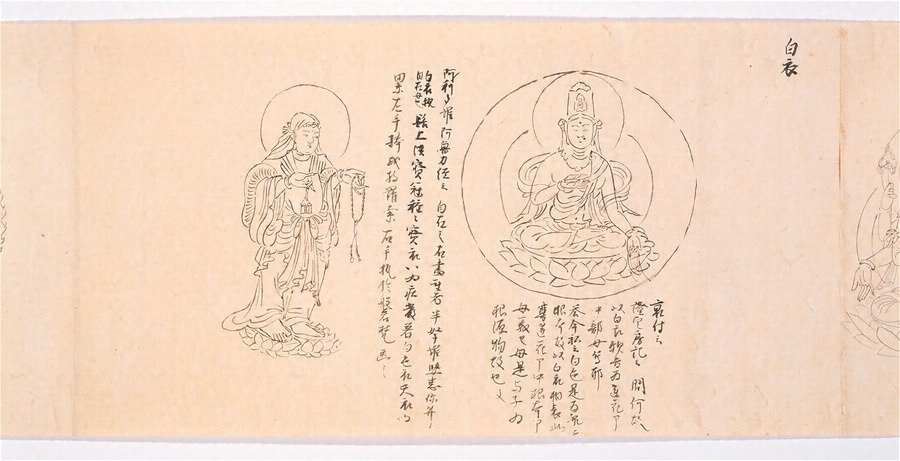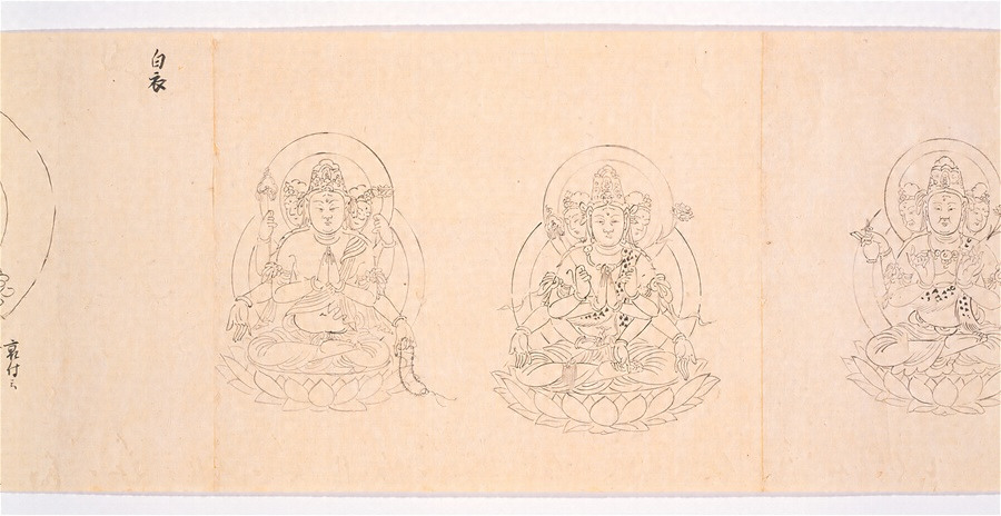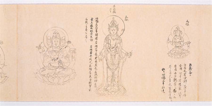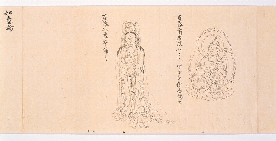 六種類の観音の図像を収集した巻子本の図像集。奥書に「洛東清水僧定深為興法畧記之于時承暦二年六月而已」とあり、後に清水寺別当を務める定深が承暦2年(1078)6月に写したものである旨が記されている。しかし巻末裏書に応徳2年(1085)を応保2年(1162)と誤記していることから、承暦2年書写の定深本を平安末期頃に改めて写したものであると考えられる。全体の構成は「聖観音」「千手観音」「馬頭観音」「不空羂索観音」「白衣観音」「如意輪観音」の順になっており、六観音を意識したものと考えられるが、「如意輪」の最後に如意輪観音の六臂が六道・六観音に対応するという定深の独自の解釈が記されていることから、結局のところ定深の如意輪観音に対する信仰が本品の制作背景にあったと考えられる。なお本図像集には、二臂の如意輪観音像として信仰を集めた石山寺本尊を写したと見られる図像が収められている。創建当初の石山寺本尊像は承暦2年正月に焼失しており、そのわずか6ヶ月後に定深が本図像集を製作した動機も、この出来事が関係していた可能性がある。