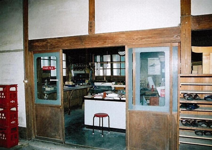 清酒蔵の西面南寄りに接続して建つ。建築面積90㎡、木造平屋建、入母屋造妻入桟瓦葺。酒の製品検査を行う部屋などに内部を間仕切る。西正面は、真壁造で白漆喰仕上げとして腰板を張り、入母屋屋根の妻を塗り込めて虫籠窓を穿つなど、重厚な構えになる。