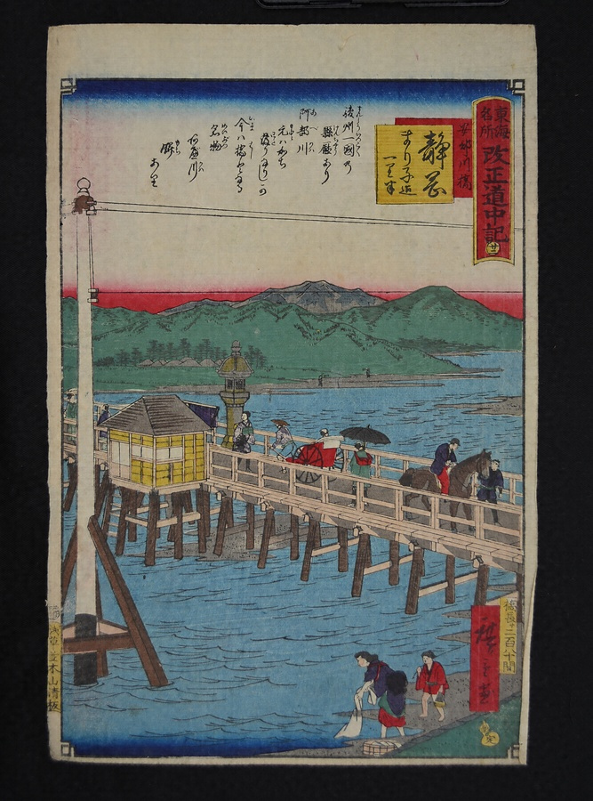 東海名所改正道中記 安倍川橋 静岡 まり子迄一里半