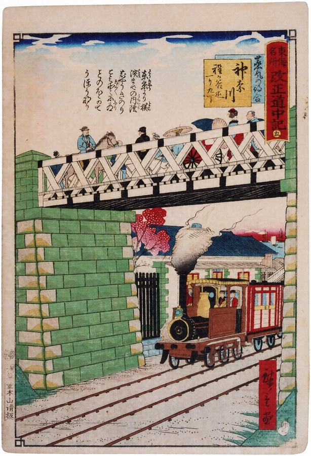 東海名所改正道中記 蒸気の待合 神奈川 程か谷迄一り九丁