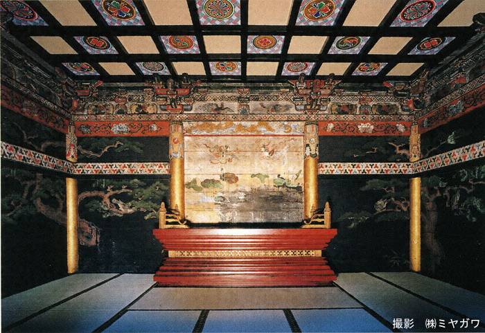桁行三間、梁間三間、一重、宝形造、向拝一間、こけら葺