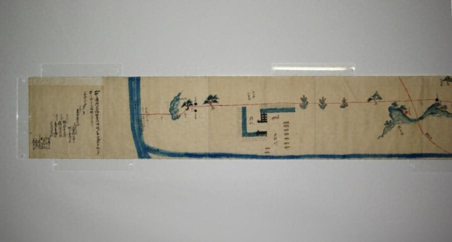 寛永19年絵図は縦92.0×横176.0cm、嘉永3年絵図は縦30.5×457.5cm。