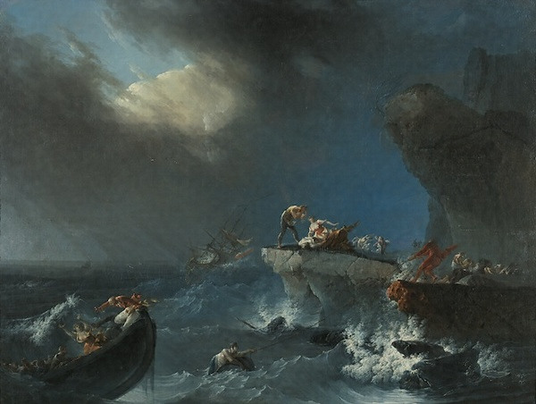 ピルマンは、最初、画家であった祖父の弟子、ダニエル・サラバ(1666―1748)に習い、ヴァトーやブーシェに連なるロココ様式の風俗画を制作。その後、数年間、ゴブラン織り工場でテキスタイルの図案を手がけた後、ポルトガル、スペインの両国でロココ風絵画とシノワズリー装飾の分野で活躍した。ポルトガル王の専属画家の地位を断ったピルマンは、続いてロンドンで約10年間、風景画に取り組むと共に、幻想画を多く制作している。1761年以降、広くヨーロッパ各国で活発に活動した。1775年以降、それまでの作品を特徴づけていたシノワズリー趣味が影を潜め、ダイナミックで劇的な自然描写への傾向が強まっていく。本作品も、激しい雨と荒れ狂う海を舞台に、劇的な身振りの人物を点景として配置することで、圧倒的な自然の力を表現しており、ロココ風の繊細な美から距離をおいた造形感覚を感じさせる作品となっている。ピルマンの2番目の妻アン・アランを含む多くの版画家が彼の作品の版画化に取り組み、1767年と72年には、それぞれ130点と120点から成る版画集も出版されている。