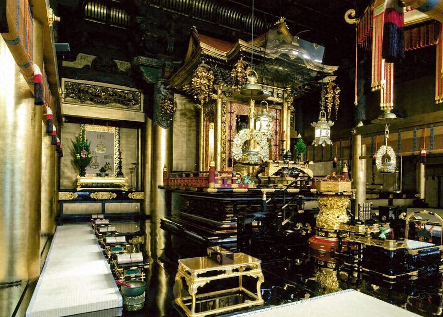 畳敷の広い外陣や金箔や彫刻,彩色等で荘厳された内陣など,御影堂と良く似た姿を持つが,左右対称の平面,柱位置の調整や架構の工夫,禅宗様をふんだんに摂取した造形など,より発展した技法を具備している。技術と意匠において優れた独創性を示しており,真宗本堂の完成形として極めて高い価値がある。