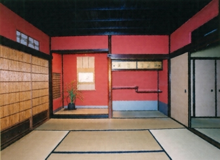文政3年(1820)の茶屋町創設当初に建設された茶屋建築で,1・2階の座敷廻りには,要所に面皮柱を用い,全体に濃い色付けをほどこし,弁柄色の土壁や具象的な図案の金物等で,独特の瀟洒で華やかな室内をつくる。