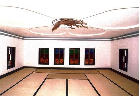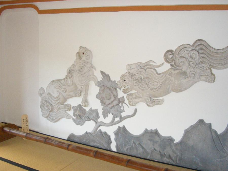 トーン型を漆喰でつくる。四階四隅の丸柱に昇り龍,二階軒庇垂れ壁に牡丹など鏝絵を施す。内部の壁には菊水や唐獅子牡丹,四階天井中央には鳳凰の鏝絵を施す。