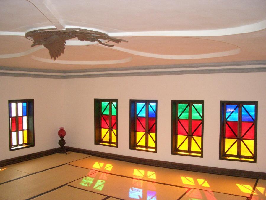四階楼は,軒高9.7mに四層を収めた階層構成や廻り階段を導入した平面構成,要所に奇想性に富んだ鏝絵を配した細部などに擬洋風の特色がよく示されている。