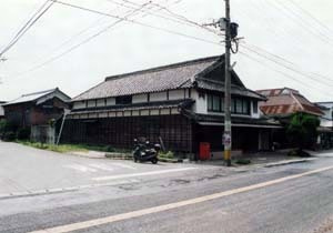 旧小城城下と鎮守である祇園神社を結ぶ街道沿いにほぼ西面して建つ。間口6間規模,正面を入母屋造,背面を切妻造とした妻入の町家で,北側をカミテとして帳場,仏間,座敷を配する。改造はみられるものの,造り酒屋の店舗の様相を今に伝えていることで貴重。
