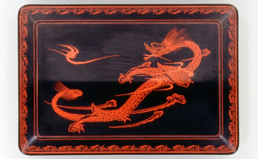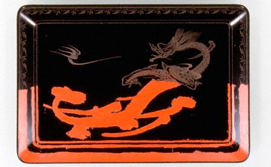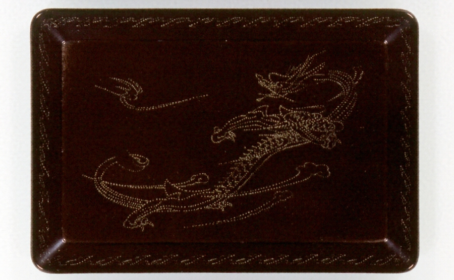 蒟醬は、漆芸の装飾技法の一つで、漆地を蒟醬剣(彫刻刀)で彫り、彫溝に色漆を埋めて研ぎ出し、文様を表す技法である。江戸時代末期以来、現在の香川県高松市で盛んになった。