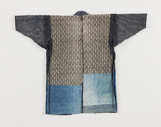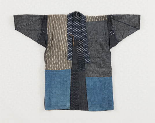 藍染の絣もめんに、縞を紺無地が効果的に何枚もはぎあわせ縫いがされ、整然とした模様が配されており、その上に枡形文様に刺し縫いされている。冬に拵えて、春のよそ行き着として着用していた。また、嫁に行く際に拵えておくものであった。大半新しい反物を用いてつくっていた。