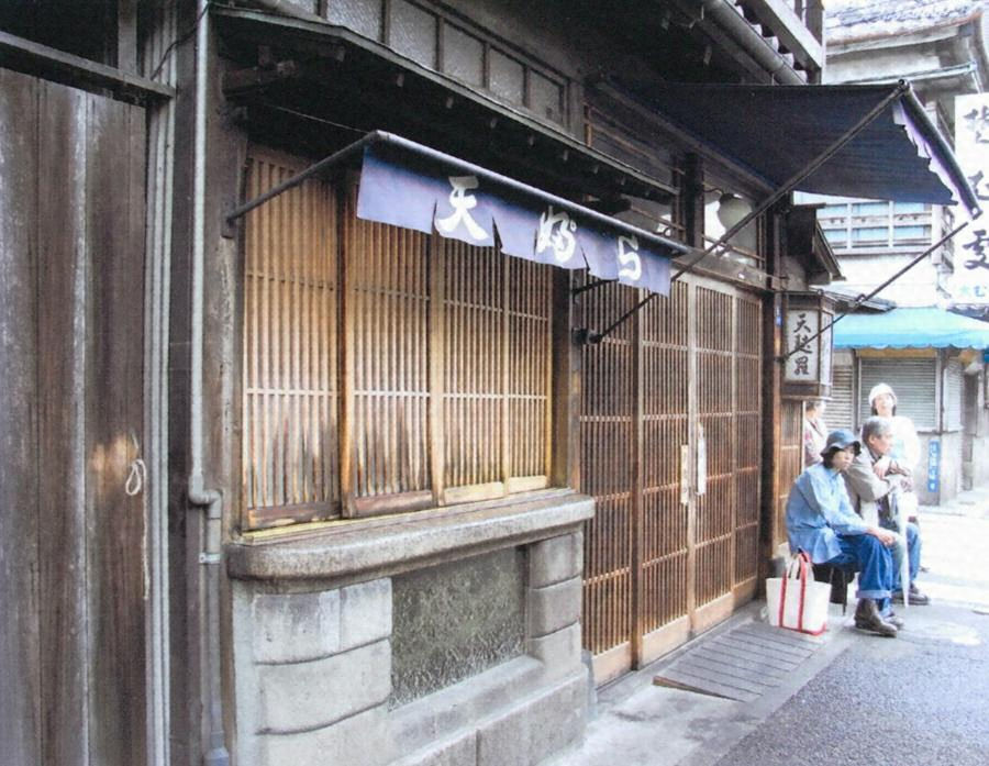 土手通りに西面して店を開き、東と南も街路に面する。間口4.6m奥行10mの木造2階建、入母屋造妻入桟瓦葺。外壁は下見板張、軒下と妻面は漆喰仕上げとする。1階を店舗、2階を住居とする。正面のカウンターなど、往時の天麩羅屋の佇まいを残す。