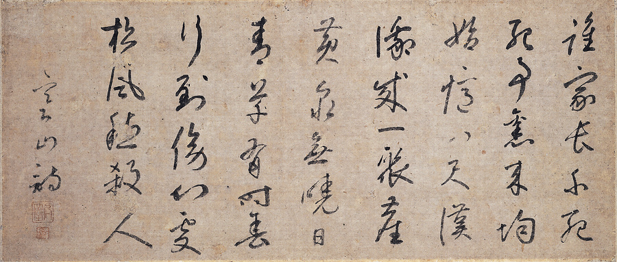 唐の散聖のひとり寒山の五言律詩を記したものである。筆者石室善玖は、25歳で入元して諸尊宿に参じ、ついに金剛幢下に入って茂古林の法を嗣いだ。8年ののち帰国、京・鎌倉の諸大寺の主となり、備後の康徳寺や武蔵の平林寺(もと岩槻、いま野火止にある)を開いた。康応元年(1389)に96歳の長寿を得て円寂。