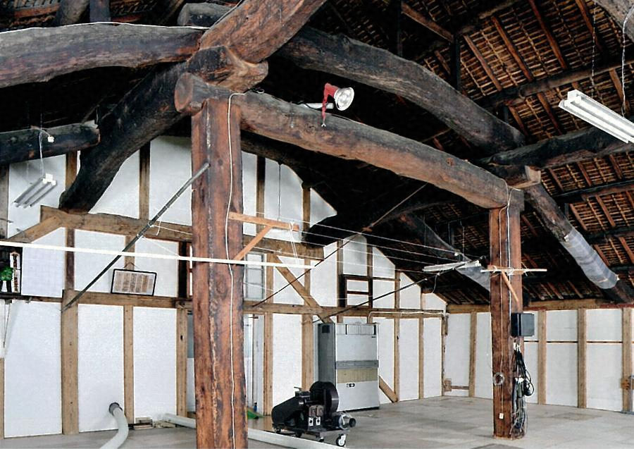 運河を埋め立てた街路の南に占める敷地の中央南寄りに位置する。桁行二二メートル梁間一四メートル、南北棟の切妻造桟瓦葺の西側に、梁間四・六メートルの招屋根を付ける。土蔵造二階建で、外壁は下見板張、内壁は漆喰仕上げとする。大規模な醸造蔵の一例。