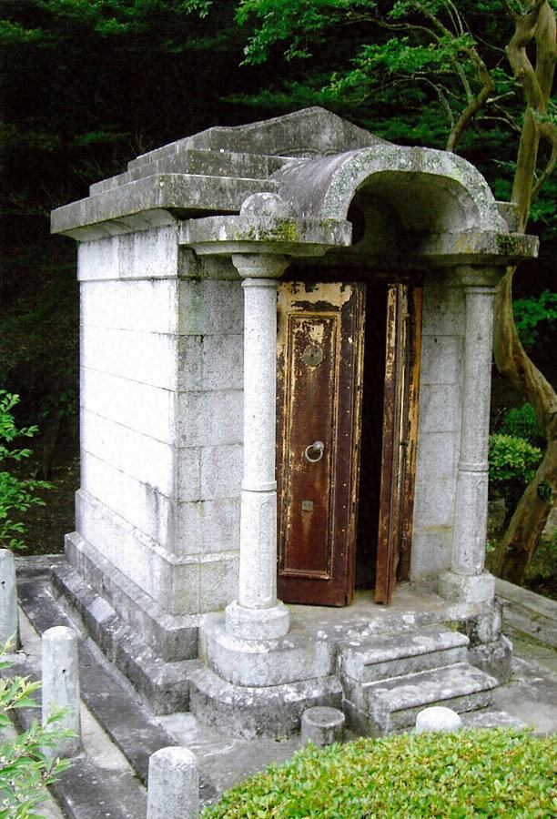 境内南寄りの山門西側に築いた亀甲石積の基壇上に建ち、間口、奥行とも一・八メートル、石造である。切石布積の躯体前面にたてたドリス式風の円柱で庇を受ける。屋根は三段構成で、下段は下端を蛇腹状につくり、上段は切妻形で、妻面に蔓状の紋様を彫る。