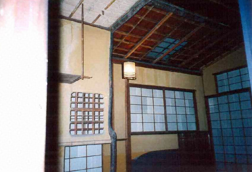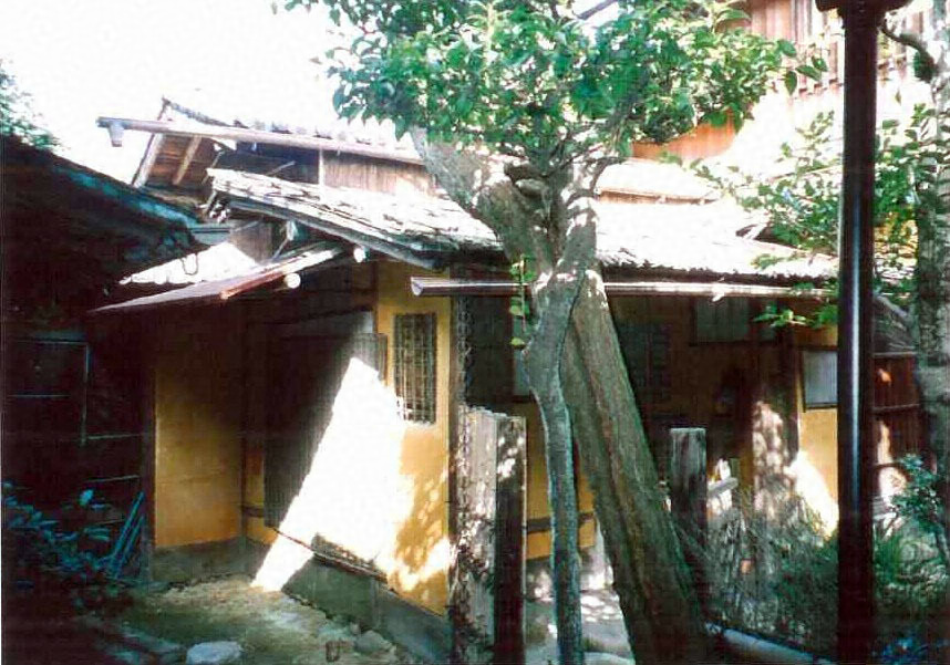 書院の西にあり,尾州久田流茶道の開祖である下村實栗の作になる草庵風茶室。床を入れて4畳ほどと小規模だが,杉皮葺屋根は格子状に組んだ竹で押さえ,格子だけでなく,棹縁天井の棹や化粧屋根裏の垂木や木舞を竹とするなど,竹を多用した独特の構成になる。