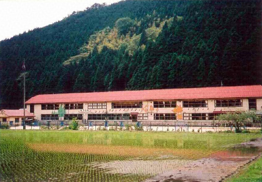 町中心部から東方を流れる北股川の右岸に位置する。桁行81m,梁間10mの長大な木造2階建で,鉄板葺,平入,外装下見板張とする。簡素ながら,西面全長にわたり窓を連続させるなど,水平性を強調したデザインが特徴的。山間部に良好に残る近代木造校舎。
