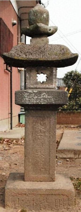 背面の元治元年(1864)の紀年銘から神仏習合時代の造立であることが判る。基礎正面に「畔吉邨中」とあることから、地縁的な集団により建てられたもので、石灯籠の制作に、上尾宿の石工が当たったことが、刻銘から知られる