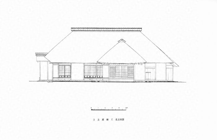 南面突出部 二階建、寄棟造、東面便所附属、茅葺