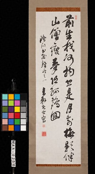 「前生我何物 恐是月前梅 影伴山僧痩 夢随孤鶴回 鴻爪臺雑吟之一 素軒居士密」