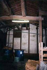 麹室東妻面から昭和西蔵西面に向けて屋根を架け室前空間を造る。桁行7m,梁間6m規模の東西棟,桟瓦葺,切妻造で,南面には桟瓦葺の土庇を付けて東寄りに入口を設ける。麹室,酒母室とともに敷地西北隅部を形成して醸造施設特有の佇まいを醸しだしている。
