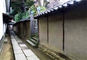 味噌蔵南から東に延びる折れ曲がり延長約40mの塀で,桟瓦葺の小屋根を架けた真壁造。中途に塀中門,水車蔵南に桟瓦葺の棟門がつく。邸宅内の景観を整える構成要素で,旧主屋の北に広がる大庭園と,北辺に連続する各土蔵の入口部を隔てる役割を担っている。