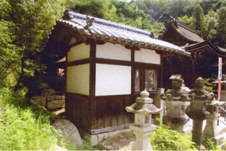 大乗天王社の南に東面して建つ。桁行2.9m梁間1.8mの切妻造妻入本瓦葺。土台上に方柱を建て、柱上に舟肘木を置く。一軒疎垂木。正面に両開戸を設け、壁を腰板張の漆喰壁とし、前寄りに窓を開ける。内部は土間床で神馬像を安置。小規模な神厩舎の好例。