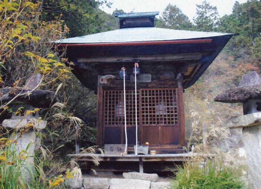 温泉地の西方に位置する。正面1間、側・背面2間、宝形造鉄板葺。正面に引違い格子戸をたて、側・背面板壁。正・側三方に切目縁をまわす。円柱が直接に桁を支持し、軒天井を張る。内部は後半部に壇を構え、本尊を安置。温泉起源に関わる伝説を伝える遺構。