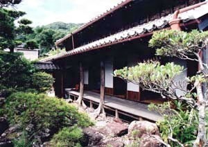 南北に長い屋敷地のやや南寄りに東西棟で建つ。桁行6間梁間4間半規模,入母屋造,桟瓦葺の木造平屋建で,東面を除く3面に下屋を廻す。南側に西から式台玄関,4畳半,4畳中の間,床付6畳座敷の4室を配する。南面縁側の柱の自然木風に見せた造作に特徴。