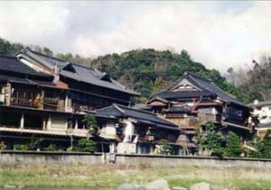 温泉旅館を構成する建物の一つ。三徳川に沿って建ち並ぶ本館と離れの間に建つ。大規模な木造2階建の建物で,1階は厨房とし2階を大広間とする。左右一対の千鳥破風をつけた大屋根は,特徴的である。近年内部は改修されたが、外観は旧状を良く保っている。