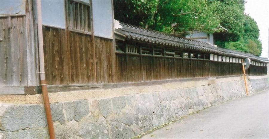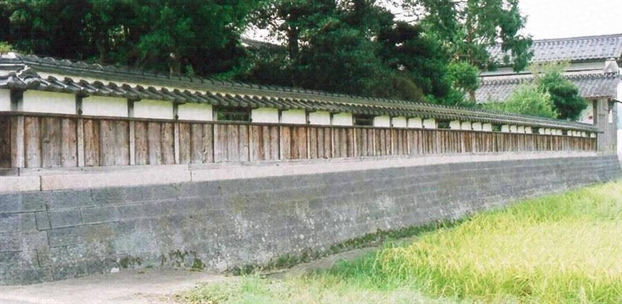 敷地東辺の番人小屋北側及び北辺に廻る。桟瓦葺の屋根付きの木造真壁造の塀である。柱を半間毎に建て,腰を焼き杉の竪板張りとし,その上を,玄関前庭に面する壁は横桟入りの透かし欄間とし,主屋北の庭園に面した壁は漆喰塗とし,一部を透かし欄間とする。