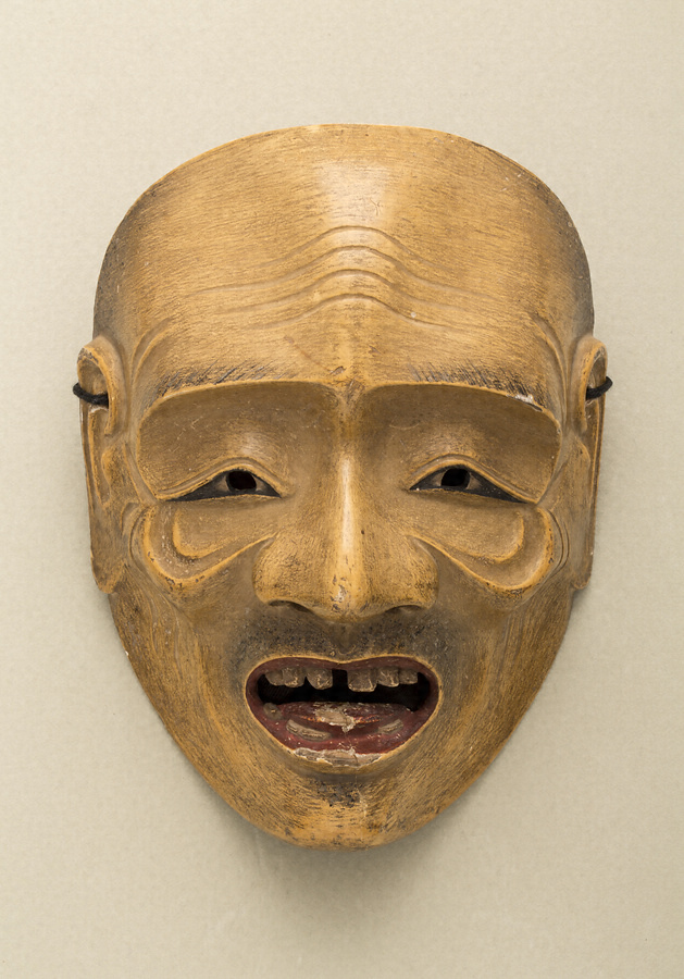 狂言面箪笥入りの十面のうちのひとつ。この一連の狂言面は、摂津国伊丹の銘酒「白雪」で知られる江戸時代以来の大造酒家・小西新右衛門の旧蔵品であり、大阪美術倶楽部において昭和8年(1933)1月24日に行われた「某家所蔵品入札」の売立目録に掲載される。小西新右衛門は平瀬露香とともに、近代能楽の発展に貢献した後援者でもあり、演者としても知られている。同売立でも「通圓 木工太夫作」と記載される。