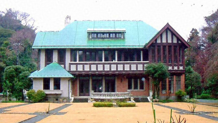 敷地北寄りに建ち,南にフランス式庭園を配す。木造2階建,地階及び屋階を設け,切妻造,銅板葺。外観はハーフティンバー形式で一部タイル貼とする。内部は前後2列に室を配し,背面に平屋のサービス棟を附属する。幾何学的な庭園と共に端正な趣の景観を形成。