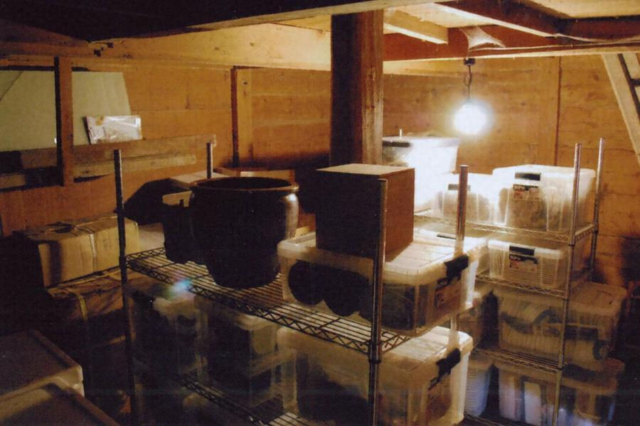 本館菊の東南に位置する。南北棟とする切妻造鉄板葺で、桁行4.6m梁間3.0mの木造二階建。方柱に横板を建て込む板蔵で、外壁には土を塗り上げたとみられる。西面中央を出入口とし、引込戸をたてる。山村に多くみられる特徴的な蔵の一例。
