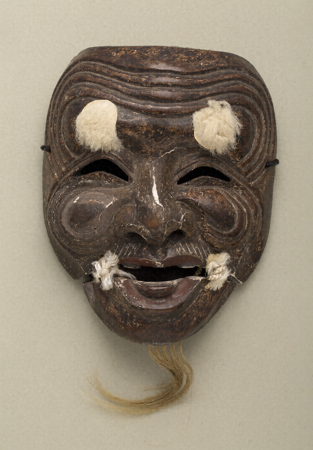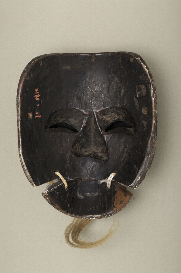 〈翁(式三番)〉で、三番三(三番叟)が五穀豊穣を祈って舞う時に用いる。翁面は本来、御神体であり、現在でも各地の神社に祀られている例は多く、いずれも下顎を紐で繋ぐ「切り顎」が特徴となっている。面裏は黒漆塗に朱漆で「壱ノ二」と記される。NM38からNM42の5面は一揃えで伝来し、NM38からNM40は面袋が共通する。