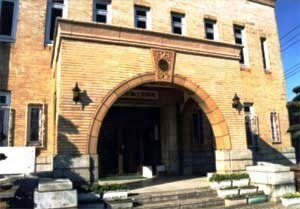 南東隅に角塔を立ち上げ、東面正面に大アーチの車寄を張出した本格的な庁舎建築。主要部は筋面タイル貼で、車寄アーチのキーストーンなどの要所にテラコッタを用いる。地元出身の梅津福次郎の寄付により建設され、現在は市の郷土資料館として活用されている。