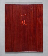 掻合塗の外箱には蓋甲に「小鼓」、見返しに「昭和四十二年十二月吉日/鼓匠 杉本小楠/蒔繪 松田権六」と朱漆で書付けられている。