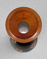 請は磨地で拭漆が施され、黒漆で「権六作之」、朱漆で「松」と朱文方形描印がある。