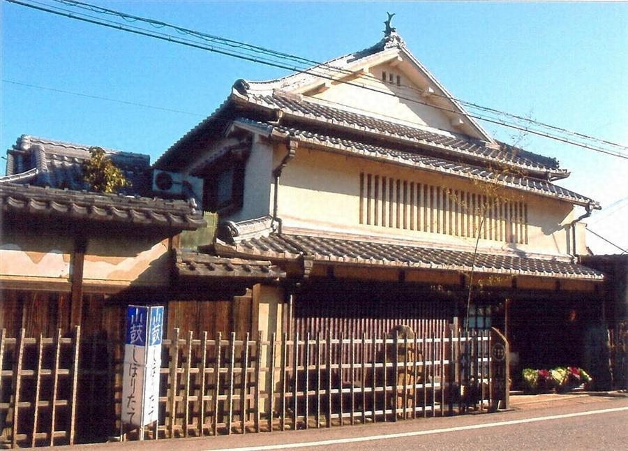 市道に西面して建つ。建築面積204㎡,木造2階建,入母屋造,妻入,桟瓦葺とする。正面1階は真壁造で木製格子を嵌め,2階は軒下に瓦庇及び虫籠格子を付ける。通り土間沿いに和室を並べる。北側に座敷を突出させ,当地で特徴的な座敷中門造とする。