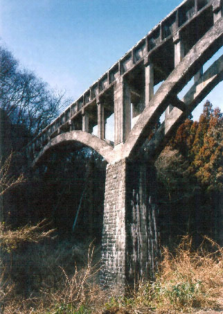 花貫ダムと花貫川第一発電所間の送水路の一部をなす長さ約77mの水路橋。支間約26mの2連RCアーチからなる。スパンドレル部に位置する木造桁橋の橋脚部材を想わせる鉛直材に,我が国の橋梁分野におけるRC導入初期の造形が窺える。