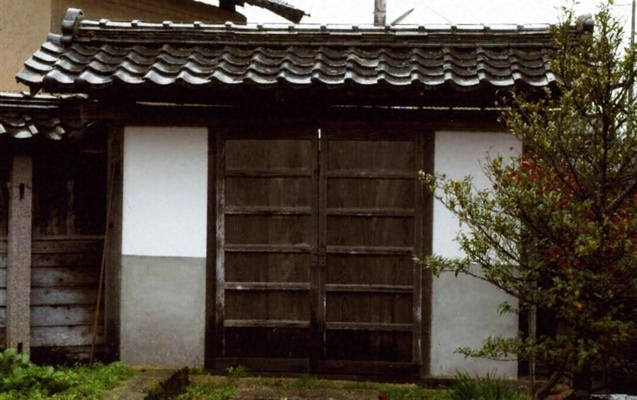 森尾川南の屋敷地の西端を画し、通用門として使われる。切妻造桟瓦葺の腕木門で、桁行3.2m棟高2.5m。両端半間ほどを腰下見板張の漆喰壁とし、中央に引分け戸をたてる。西方からの通り正面に建ち、小規模ながらも印象的な門である。