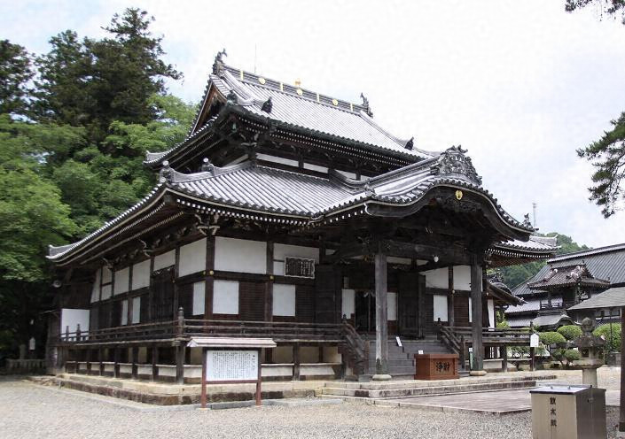 誕生寺は法然上人生誕の地に開創したと伝える浄土宗寺院で、御影堂はその本堂。二重の五間堂で、浄土宗における仏堂型本堂のうちでも、側回りを円柱・三斗組とした本格的なもの。内部は外陣を仕切るだけで、内陣まわりや位牌の間が仕切られない古式な平面をもつ。 大門は大規模な三間薬医門で装飾性に富む。