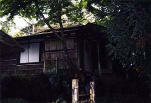 白雲洞の西に独立して建つ寄棟造,茅葺の茶室。2畳台目の小間とともに4畳半の寄付,水屋を備え,前面に深い土庇を付す。?丸太を多用し,竹垂木の駆込み天井とするなど,草庵風の侘びた意匠になる。設計は,数寄者・工匠として名高い仰木魯堂と考えられる。